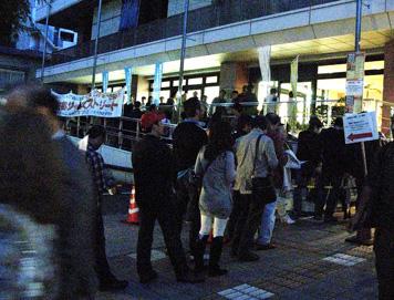 この日のために結成された阿佐谷カルテット、一部を終わって外へ出るともう陽は落ちて夕ぐれ時、産業商工会館前には阿佐谷カルテットの次のステージを待つファンで長い行列が出来ていた。