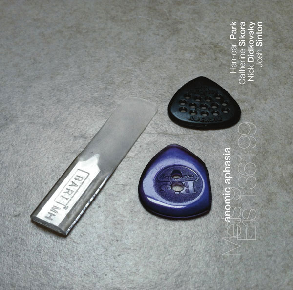 最も興味深い最近のリリース作品のひとつは、ギタリストのパク・ハンアルHan-earl Parkをリーダーとする二つの異なるトリオ演奏を収録した『アノミック・アフェイジア(Anomic Aphasia)』(SLAM Productions)である。ひとつはギタリストのニック・ディドゥコフスキー Nick Didkovskyとサックス奏者キャサリン・シコラ Catherine Sikoraとの<エリス136199 / Eris 136199>、もう一つはシコラとリード奏者ジョン・シントン Josh Sintonとの<メティス9 / Metis 9>。2月19日にリリースされたこのレコードには、パクのトレードマークの打楽器的アプローチによるギター・プレイが5曲の即興トラックに収めされている。アルバムは、エリスのギザギザで角のある楽曲が、メティスのより健全で流動的なナンバーに挟まれた構成になっている。本作はパクの2年間のニューヨーク滞在の成果である。その期間に、パクは上記二つのグループの他にもサックス奏者イングリッド・ラウブロック Ingrid Laubrock、ヴォーカリストのヴィヴ・コリンハム Viv Corringham、電子音楽の達人アンドレア・パーキンス Andrea Parkinsとも共同作業した。このレコードで、パクは白いキャンバスにサウンドで色を塗り、鼓舞されたバンドメイトたちも同様に絵筆を走らせた。彼らは一緒になって、描き上げたばかりの集合肖像画に点を穿ち、所々に飛沫を散らし、時には引き裂く。そして切り取り、並べ替え、分割する。2013年末にパクがアイルランドのコークへ帰国してしまって以来、ニューヨークでは彼の不在を嘆く声が絶えない。