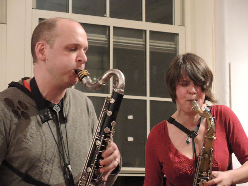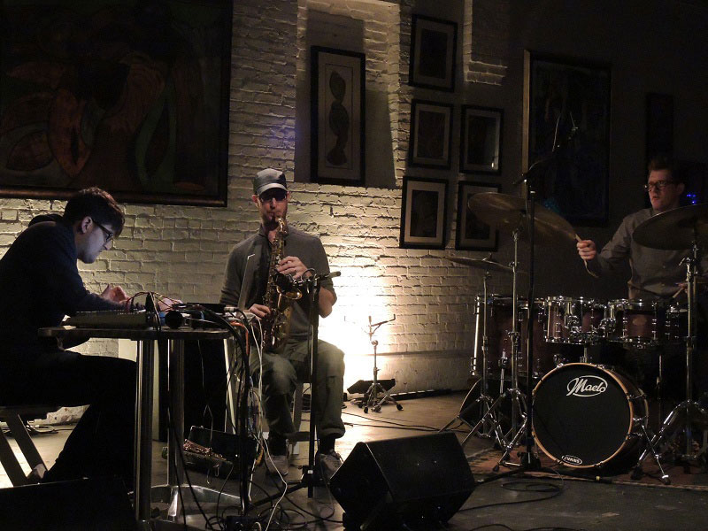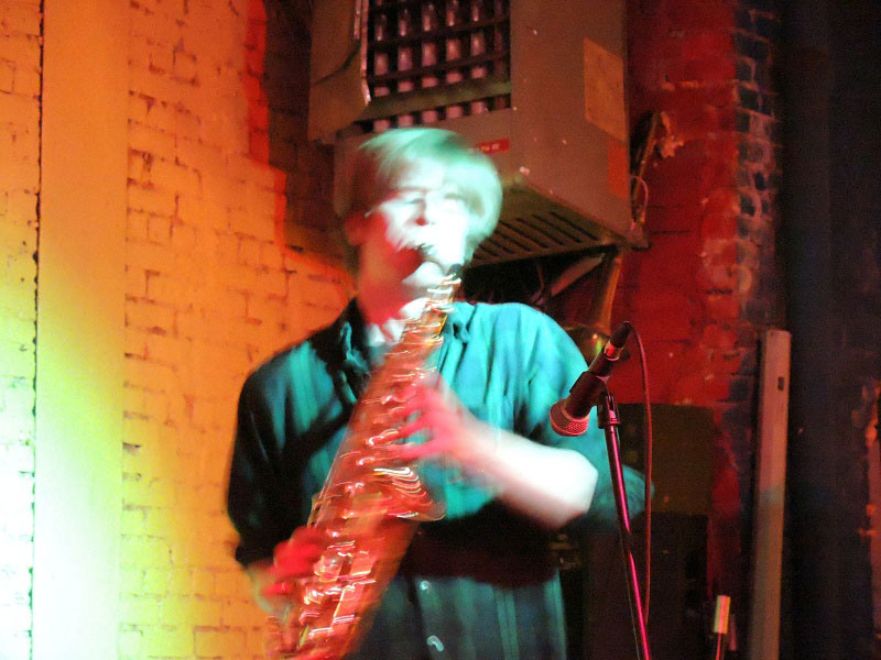 5分歩き、学校のような建物にある「Arts for Art」。ちょうど、アンドリュー・ドゥルーリーのグループ「Content Provider」が演奏をはじめるところだった。シンプルに精力的に叩くドゥルーリーのドラムス。教室のような部屋は天井が高く、ベース以外はアンプなし。ドゥルーリーは部屋全体がタイコのようだと喜び、イングリッド・ラウブロックとブリガン・クラウスのサックスが共鳴していた。当初の予定にあった、サックスのチャールズ・ゲイルの客演がなくなったのは実に残念だった。