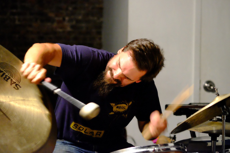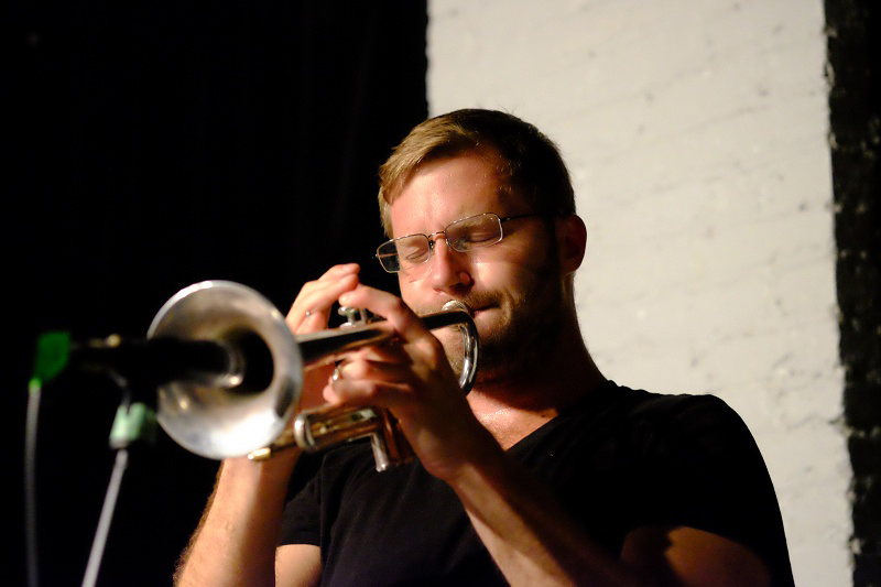ライヴ・シーンの注目は、9月13日JACKアーツに於けるジェイミー・ブランチのクルークス Jaimie Branch’s Crooksの燃えるようなプレイだった。この若いトランペット奏者は、6ヶ月前にシカゴからユーヨークへ居を移して以来、目覚ましい活躍を続けてきた。ブランチと共演したのはジョン・ウェルシュ John Welsh (g)、ブランドン・ロペス Brandon Lopez (b)、そしてサム・オスポヴォット Sam Ospovot (ds)という有望なプレイヤーたち。その夜、才気あふれ真っ直ぐなブランチの持つ大量のエナジーに、バンドメイトたちが見事に応えた。