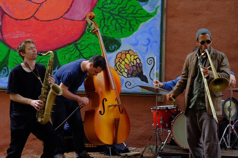 無料だが、演奏する面々は豪華。日本から帰国したばかりのトッド・ニコルソン(ベース)は世話人も兼ねている。あちこちで注目されはじめている実験的なトロンボニストのベン・ガースティンらが参加したバンド。シカゴ出身の渋いアンドリュー・ラム(サックス)。まるで伴奏するようにユニークな旋律を展開するダニエル・カーター(サックス)。未来人のように知的で鮮烈なサウンドを構築するジョナサン・フィンレイソン(トランペット)・・・。リラックスして、かつ刺激的な2日間の午後なのだった。