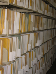 私が最初にチャックにこのセクションに連れて行かれた時の事は今でも忘れない。5センチから10センチ程の写真のファイルを数冊、ドン!と私の目の前の机の上に置かれ、『凄いだろう、見てご覧よ! 』と次から次へとページをめくられ、目が回る程忙しかった。それほど古くない物(と言っても20年以上前の写真だが)の中にはカウント・ベイシーの1984年のお葬式の際、棺に入った御大の写真も何枚かあり、今でも目に焼き付いている。チャックのオフイスを訪ねれば、当然毎回この写真類を見せられる訳だが、全部目を通すのに一体どれ程の時間が必要か皆目検討がつかない。
