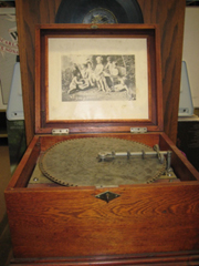![]() 円盤形ディスクをプレイするミュージック・ボックス。 |