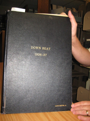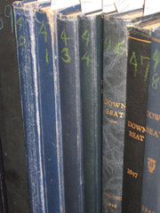 ![]() ダウン・ビート・マガジン。 1年ごとに本の様にファイリングされている。 |