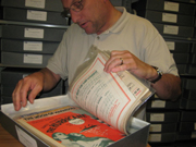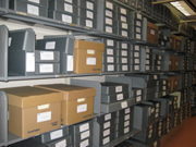 ![]() 楽譜、雑誌、その他書類が整理、保管された棚。 |