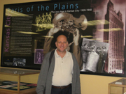 チャックらが監修した写真展“Kansas City Paris of the Plains"のポスターの前で。