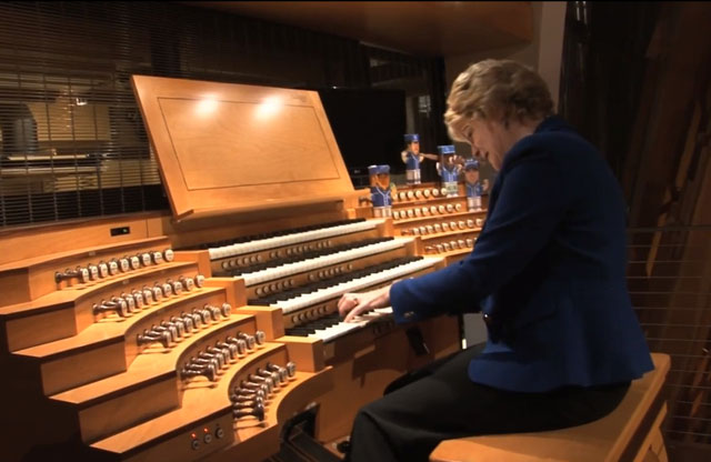 このカウフマン・センターで働くスタッフ達が、センター内のヘルズバーグ・ホールでパイプオルガンの演奏をバックにウェイブをしながら、<Take Me Out To The Ball Game〜私を野球に連れて行って!>を唄っている映像をYou-Tubeで見つけた。私はすぐにリンクをフェイスブックに投稿したところ、Jazz Tokyoコントリビューターの及川公生さんから瞬時に「あのホールですか?」とコメントを頂いた。「そうです!永田音響設計のカウフマン・センター・フォー・ザ・パフォーミング・アーツです。野球はやっぱりアメリカ。こういうアメリカ人の底抜けの明るさ大好きです!」と私が返す。「どんな状況の録音かは判りませんが、重低音の響きの重厚さにビックリ、いいホールですね」と、及川さん。「このビデオ・クリップって完成度が高いと思われませんか?映像も音も」「計算され尽くした演出と、ちゃんと音を捉えていて、機材も相当なモノを使っていると思われます」と、こんなやり取りをした。以下、そのリンク。