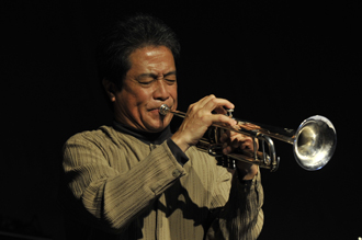 寅年の1950年3月21日、兵庫県芦屋市の生まれ。13才の時に大阪でルイ・アームストロングの公演を聴き、トランペットに目覚める。1972年、関西学院大学卒業と同時に結婚、渡米、ボストンに住み着く。1975年首席で卒業の翌年、ビル・フリゼール(g)をオリジナル・メンバーとするフュージョン・バンド「タイガーズ・バグ」結成、華々しい活躍を展開。1978年、ゲイリー・バートン・カルテットに参加、『タイムズ・スクエア』(ECM) 録音、ワールド・ツアー。 |