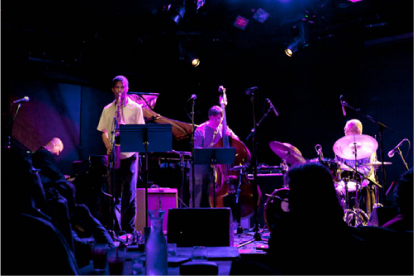 写真1:左から:イーサン・アイヴァーソン(p)、マーク・ターナー(ts)、トーマス・モーガン(b)、ビリー・ハート(ds) |