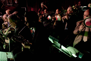 毎週月曜日に、長年、ヴィレッジ・ヴァンガードのバンドスタンドを一杯に埋めている、ヴァンガード・ジャズ・オーケストラ。4/4の月曜の夜は、いつもよりも多くの観客と、多彩なスペシャル・ゲストが集まり、日本のジャズ・コミュニティへ、熱い思いを送るスペシャル・ナイトとなった。