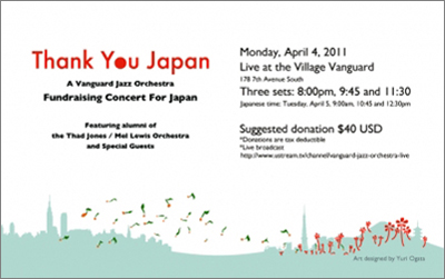 Thank You Japan〜A fundraising benefit for the Japanese Jazz Community featuring the Vanguard Jazz Orchestra, alumni of the Thad Jones/Mel Lewis Jazz Orchestra and Special guests |