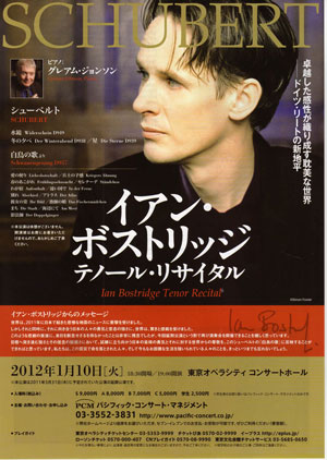 昨年3月の来日が東日本大震災のためキャンセルとなり、改めて開催された延期公演。オール・シューベルト・プロ。休憩なしの1時間半、たっぷりとシューベルトの世界にひたり、新年早々、とても幸せな時間を過ごすことができた。 |