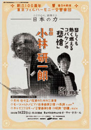 小林研一郎のキネティックな身体の動き、それに呼応してオーケストラのサウンドの手綱がいかに絞られ、生き物のような動静を見せるかをじっくりと堪能できたプログラムであった。また、モーツァルトのコンチェルトを除いて指揮は暗譜である。さすが「コバケン」のキャリアと貫禄が滲む。 |