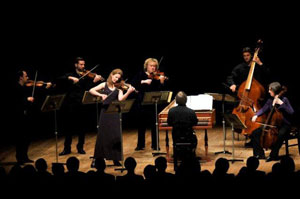 バロック・ヴァイオリンの名手レイチェル・ポッジャー(英国生まれ)を中心に2日間にわたって行われたバッハ・フェスティバル。朝11時から夜の8時すぎまでコンサートが全7回、いわば一日中バッハ漬けになるフェスティバルである。ポッジャーによる無伴奏ヴァイオリン・ソナタ3曲、無伴奏ヴァイオリン・パルティータ3曲、彼女の手兵ブレコン・バロックとのヴァイオリン協奏曲が5曲、チェンバロ協奏曲1曲、さらに無伴奏チェロ組曲が3曲、これにテレマン「3つのヴァイオリンのための協奏曲」、チェンバロのディエゴ・アレス(スペイン生まれ)の 「ゴルトベルク変奏曲」が入るという豪華版である。 |