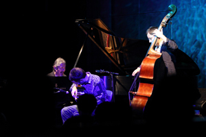 居合い抜き、や、能の集中、と、わたしが言葉を選んでしまうのは、他のジャズ・ミュージシャンには使用できないからだ。だから、ジャズでも、インプロでも、ヨーロッパでも、アメリカでも、同時にイエスであって同時にノーである。これはコトバ遊びではない。TPTトリオ3者の、互いの音に対する集中する仕方は、ジャズでも、インプロでも、ヨーロッパでも、アメリカでも、うまく共通点が見出せない。インプロで、デレク・ベイリーとスティーブ・レイシーの初期のデュオに似た強度の瞬間を感じた記憶はあるけれど。 |