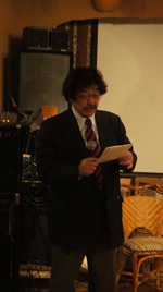 ステージがほどよく盛り上がってきたところで、このイベントの目的のひとつでもある、マリのことを広く知ってもらうための現地近況を(有)アフリカンスクエア代表の牛尼恭史(うしあまやすし)に報告していただく。アフリカンスクエアは1992年設立のアフリカン・グッズ輸入販売の会社。現地生産者の雇用環境を配慮し製造された各種グッズは、最近日本でも取り扱いが増えてきたフェア・トレード商品よりも、ずっと求めやすい価格で販売されている。混乱のさなかにあって仕事が激減してしまった生産者のために、少なくないリスクを背負って発注と仕入れのためマリへ渡航した牛尼の話は、メディアでは報じられることの少ない普通の人々の今の暮らしを写真とともに伝えてくれ、ひとりひとりに現地への想いを膨らませてくれたと思う。