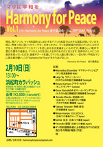 また、マリ以外の困難な状況にある人、地域、国を覚え、同様のイベントを今後も定期的に行っていこうと考えている。残念ながら、この世の中から争いごとがなくなることはないかもしれない。わたしたちの活動は小さなものだし、即効性のある問題解決策の提案はできないかもしれないが、国籍、国境、言語、肌の色、伝統、宗教など様々な違いを乗り越え受け入れ、小さなハーモニーをあちこちに沢山生み出し連なり、やがてそれが大きなハーモニーになり、いつかHarmony for peaceの活動が必要なくなる日がくるまで、希望を持って続けてゆきたいと思う。