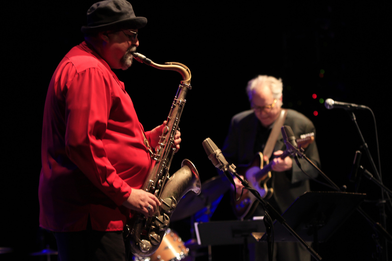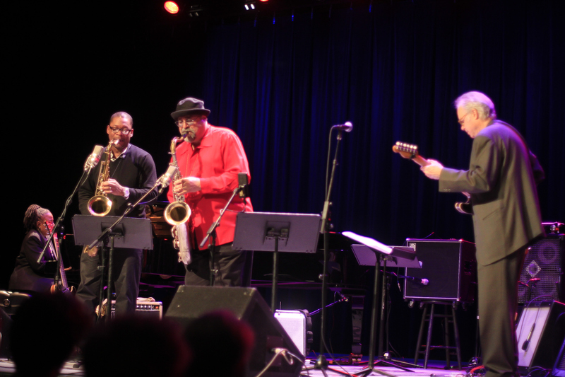 それとは対称的に、モチアンのお馴染みの(そして簡潔にまとめられることが多い)セット・クローザーである<ドラム・ミュージック>は長尺に展開する扱いを受けた。全員集合のクロージング・ナンバーはトリビュート・ショウやオール・スターが勢揃いするチャリティ・コンサートではややもすると無様で無用な長物化することが多いが、当夜は例外だった。マット・ウィルソンがフリゼールとロヴァーノのコンビに加わり、素晴らしいドラムのイントロで曲をスタートさせ、その他のミュージシャンはそれぞれが思い思いに演奏展開、ソロを取ったり、楽器を使い回したりした(ジェリ・アレンとマット・ミッチェルが連弾し、アンドリュー・シリルがウィルソンとドラムセットをシェアしたりした)。ロヴァーノがそれとなく展開を導いているように見受けられたが、最後にホーン群と複数のギターを集めて声高でかつパワフルなテーマをユニゾンで演奏し、「さよなら」を言いたくない風情で締めの音を絞り出した。