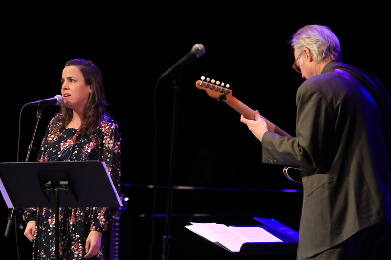 当夜の唯一のヴォーカル・ナンバーはビル・フリゼールとペトラ・ヘイデンのデュオ。ペトラはモチアンのリーダーとしての最後のアルバム『ウィンドミルズ・オブ・ユア・マインド』のタイトル・トラックを歌って『ウインドミルズ〜』をモチアンの最高傑作の1枚に仕立てたその人なのだ。モチアンの最も親しい常連の共演者でもあり当夜の欠席がもっとも惜しまれた彼女の父親、チャーリー・ヘイデンからの書簡を読み上げてから、ペトラは震え気味の声でしかし楽曲に深く入り込みドラマチックで感動的な演奏を披露した。