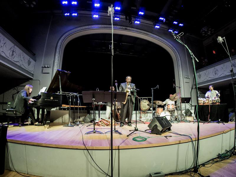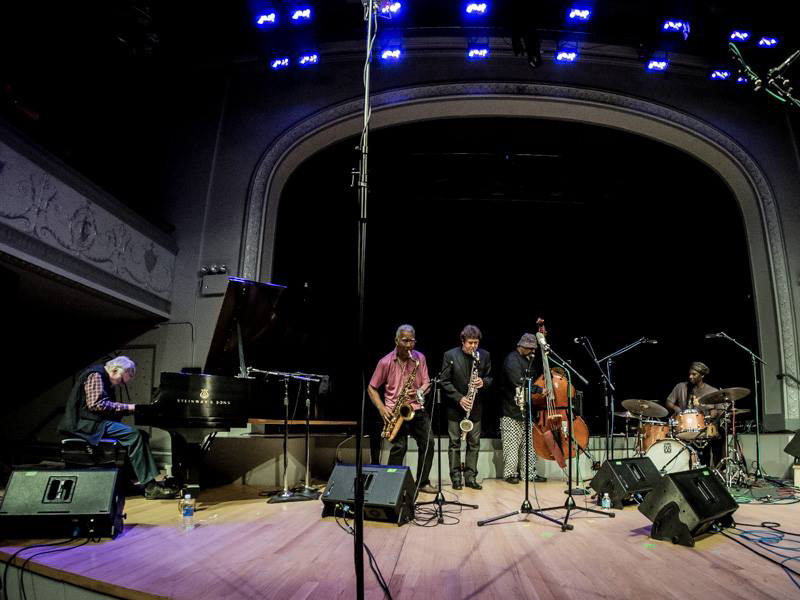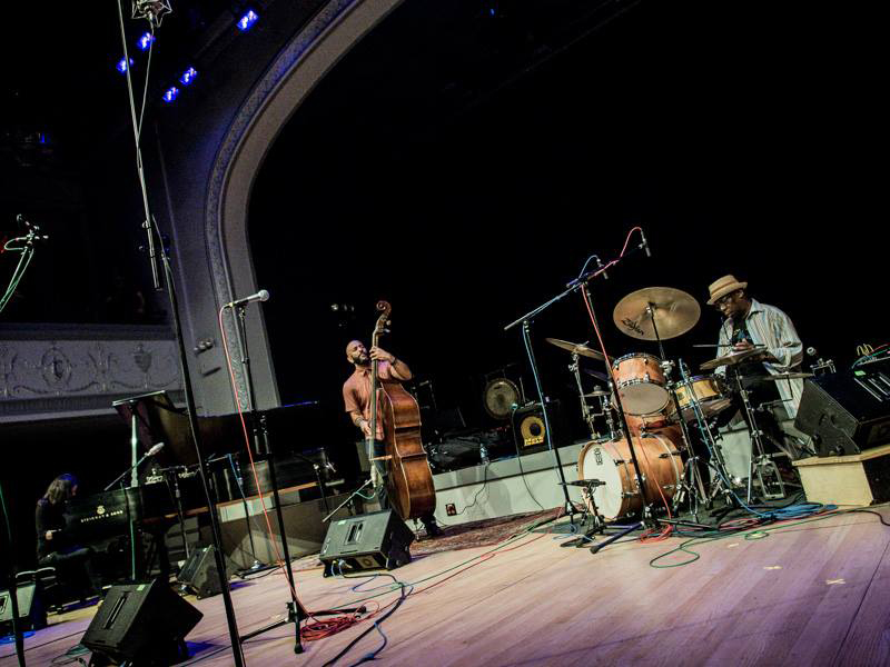 当夜の最終セットは、レジー・ワークマンのWorkzで、レジー(b)、マリリン・クリスペル(p)、オディーン・ポープ(ts)、テイパン・モダック(tablas)、フェローン・アクラフ(ds)という編成。ワークマン氏は、60年代中期にジョン・コルトレーンと演奏するなど、その長いキャリアを通じて他の重要な演奏家とも共演してきた伝説的なジャズ・ベーシストのひとりである。彼はそれぞれがこの素晴らしいクインテットの重要な役割を担うオールスター・バンドを編成した。