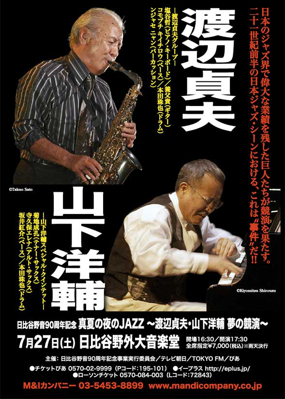 一方、日比谷野音は1923年に誕生し90周年を迎える。1969年以降、夏に「サマー・ジャズ・イン・トウキョウ」「サマー・フォーカス・イン」などのジャズ・フェスティバルが行われ、渡辺、山下とも何度も参加している。また山下は思い出のコンサートとして1981年、筒井康隆、タモリらが出演した「ジャズ大名・セッション・ザ・ウチアゲ」、2009年の「結成40周年記念!!山下洋輔トリオ復活祭」を挙げる。渡辺は「日比谷野音での一番の想い出といえば、1990年、南アフリカのネルソン・マンデラ氏が初来日した際に、二人でステージに上がった時のことです。ぼくらの演奏と聴衆の皆さんの声がひとつになり南アフリカ国歌をうたったのでした。」と記している。