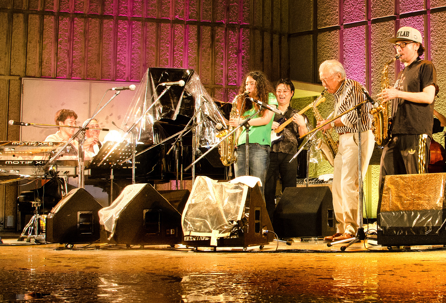 本田によると、「オヤジ(本田竹曠)と野外ステージに出演すると必ず雨または豪雨だった。」本田竹曠をはじめジャズの先輩たちが来ていたのではないかという。いや、スピリチュアルでも豪雨は勘弁してほしいが、80歳の渡辺に71歳の山下、現役で走り続ける二人に、中堅の塩谷、本田をはじめとするすばらしい若手のミュージシャンたちに、21歳の寺久保。それを優しく包む90歳の日比谷野音。(山下は、8月末に肝機能障害による体調不良のため2ヵ月の治療休養に入ったが、一日も早い回復を祈りたい。) 全身ずぶ濡れで地下鉄に乗りながらも、爽やかな嬉しい余韻の残るコンサートとなった。