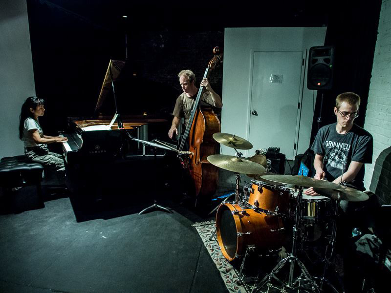 19日にリハーサルをした、ベースのレネとドラムのデイヴィッドとのピアノ・トリオ。東京で昨年から活動を始めたSatoko Fujii New Trioのニューヨーク・バージョン。レパートリーである私のオリジナルはややこしいものもあったが、不安は先日のリハで払拭済み。ラインアップが変われば、これだけ個性的なミュージシャンばかりなのだから、音楽も全く異なるものになる。作曲家の私がじつはそれを一番楽しんでいる。ピアノ・トリオとはいえ、それぞれが従来のスタイルではなく演奏するというコンセプトなので、各ミュージシャンの個性が存分に引き出される。思い切り弾きまくって、楽しかった。