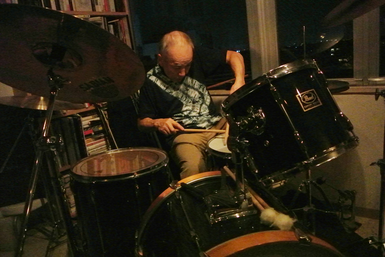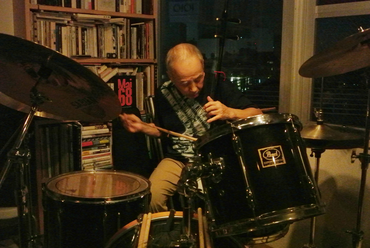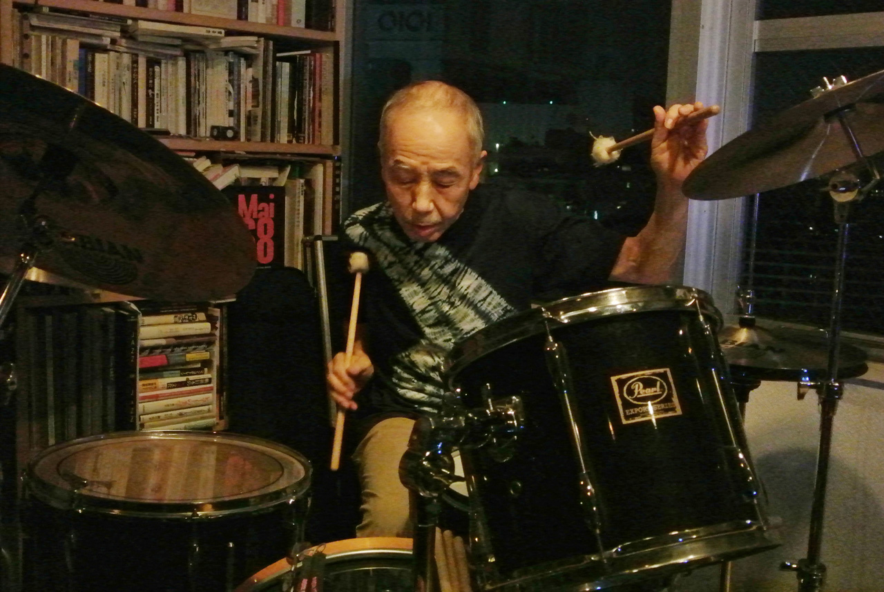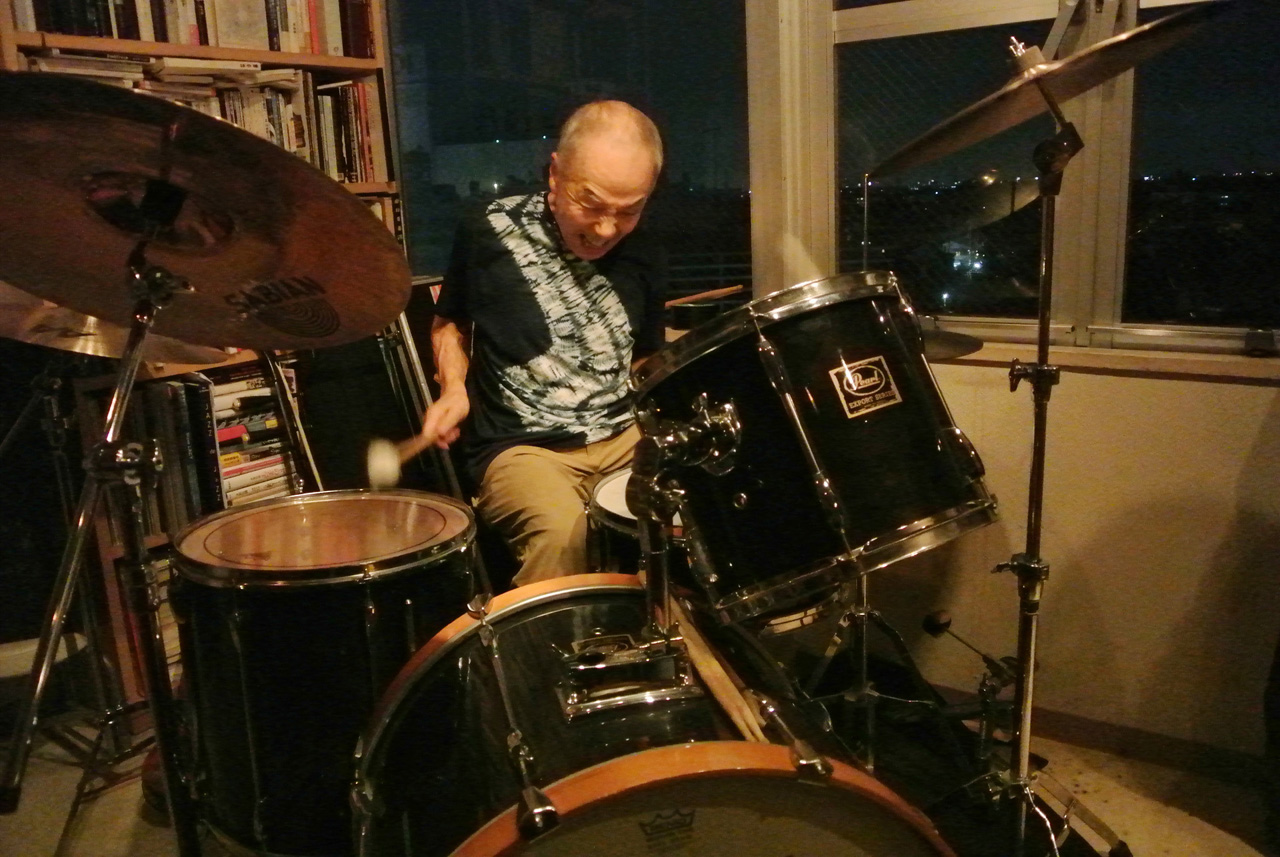 バスドラからわずか50センチという至近距離で聴くSABU豊住のサウンドは気持ちよく空間を、心を満たしてくれる。