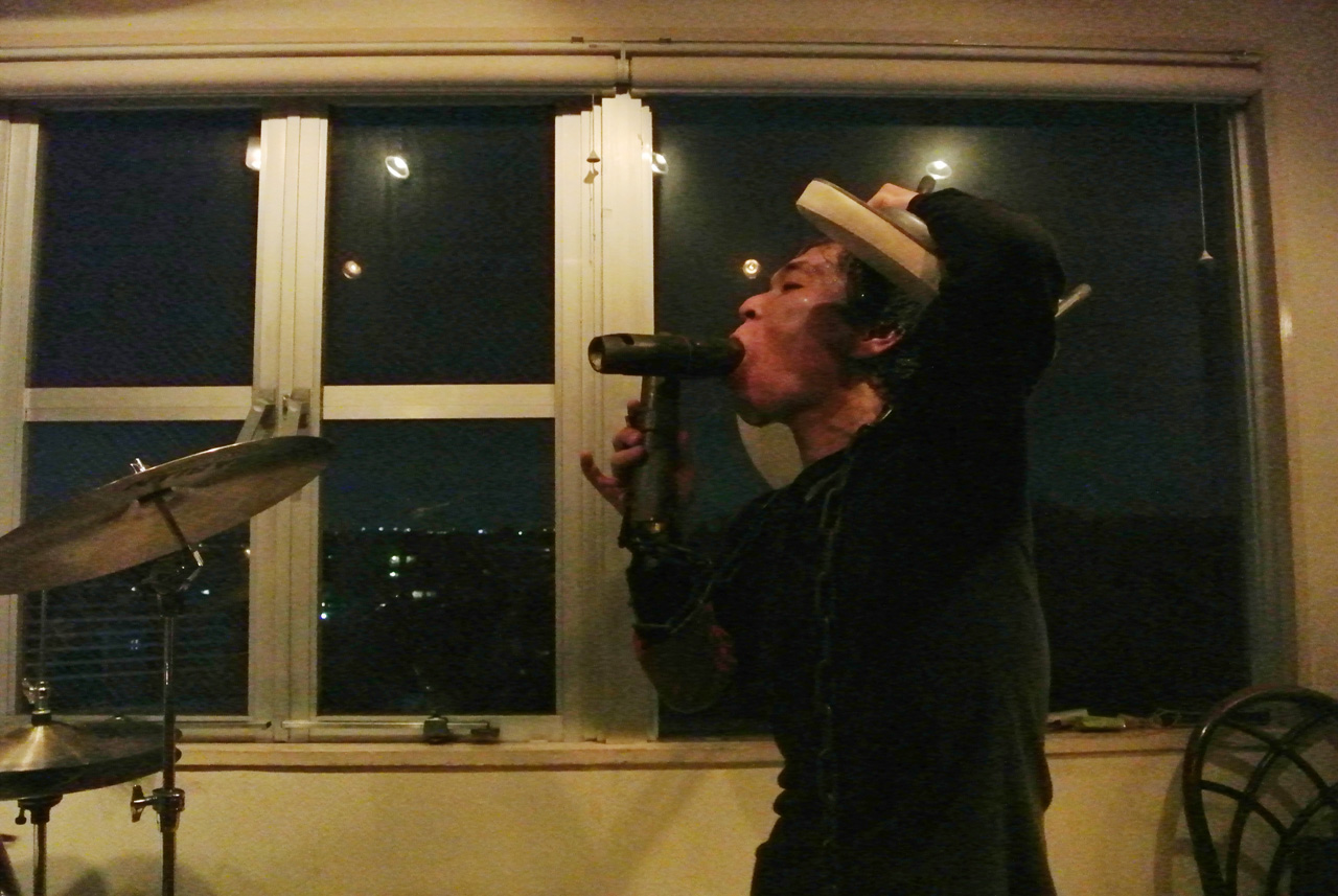 そして椅子を持ち上げ、鎖を打ち鳴らす。懐かしいフリーの光景が浮かび上がる。しばし歩いた後、金属製の穴の開いたパイプを口にほおばり、息を吹き込みはじめる。ヒューヒューと云う音がSABU豊住と交わる。浦邊雅祥は以前、佐藤通弘(津軽三味線)や三上寛(vo)などと共演している人という程度の事しか知らなかったが横浜・白楽「Bitches Brew」では「7days・ソロ」など頻繁にソロやデュオで演奏しており、この10月29日にも「Bitches Brew」で演奏することを会場で貰ったチラシで知った。