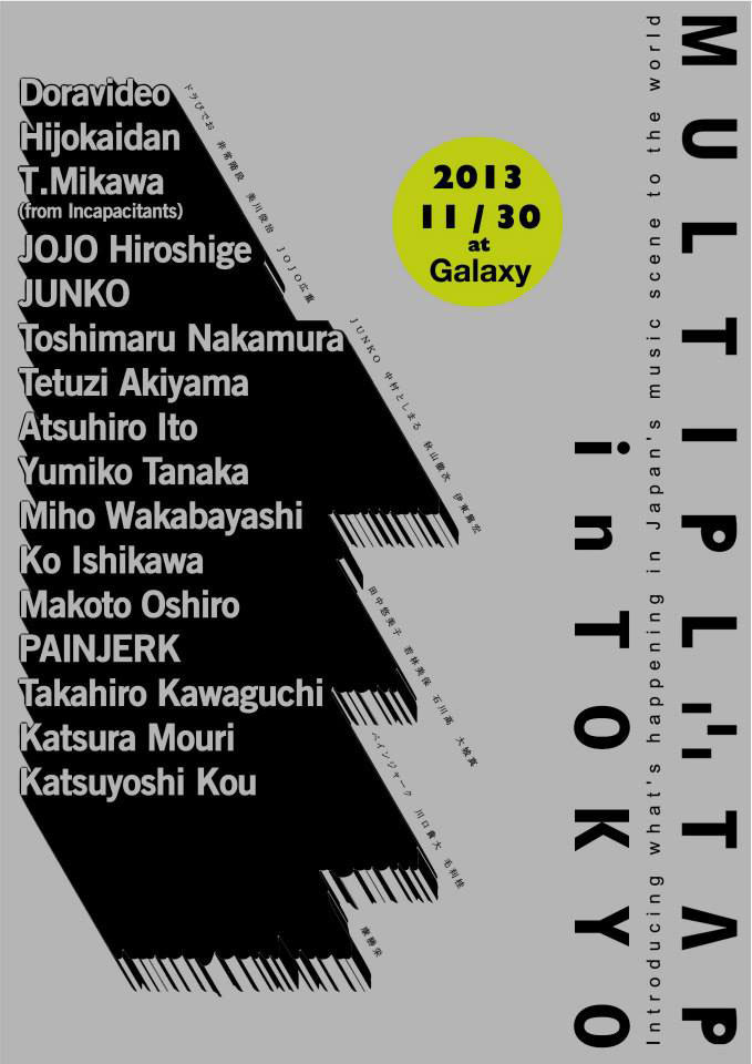 2014年2月22日(土)、23日(日) 二日間に亘りロンドンCafe OTOで“日本の音楽シーンの混沌さと過剰さを再現する”イベント<Multiple Tap>が開催される。企画したのは若干30歳の即興音楽家・ギタリストの康 勝栄。好きな音楽を聴き続けるうちに、デレク・ベイリーやジョン・ケージ等に触発され、手持ちのギターで自然に即興演奏を始めたという康は、ロル・コクスヒル、スティーヴ・ベレスフォード、美川俊治、中村としまる、川口貴大、山本達久、弘中聡等、国内外の様々な演奏家と共演し大きな影響を受けてきた。経験を積むうちに、自らが身を置く音楽シーンに漠然とした閉塞感と先行き不明な感じを抱き、それを打破して即興・実験音楽の環境・世界を変えることが出来ないか、と思うようになり、昨年秋に立ち上げたのが<Multiple Tap>構想だった。