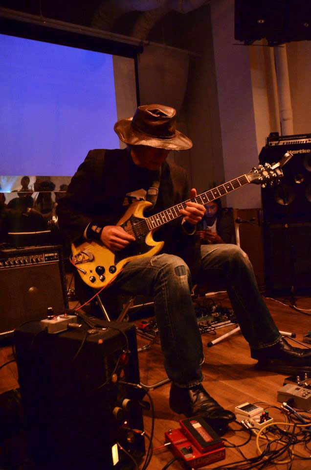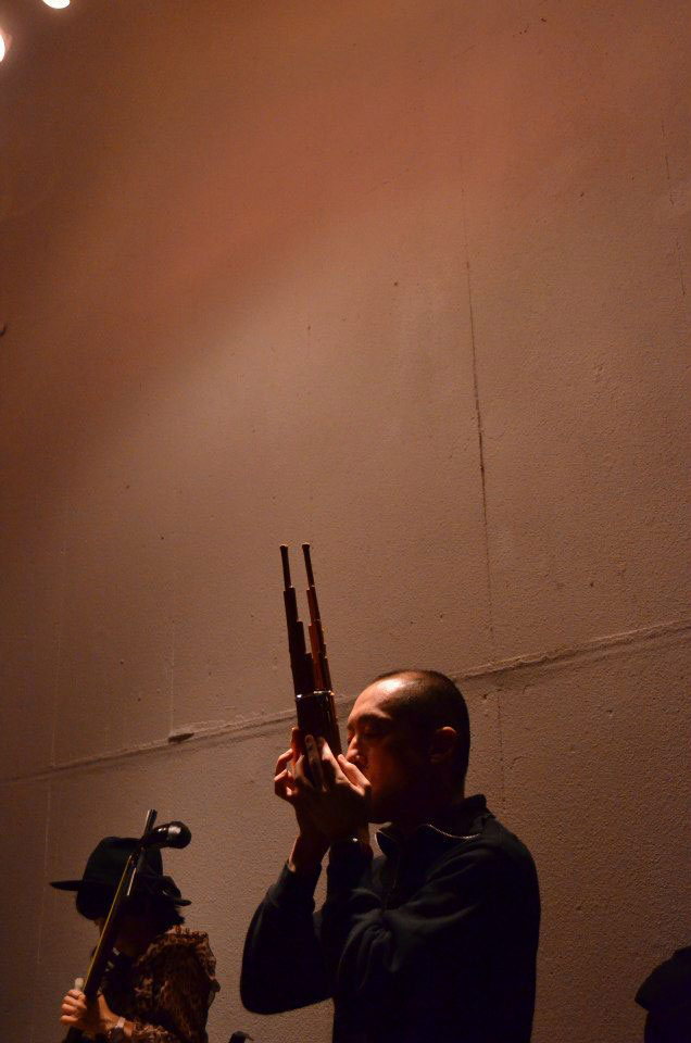 前置きが長くなったが、この画期的な構想の第一歩となるプレミアムイベントが原宿のGalaxy 銀河系で開催された。渋谷・原宿駅から歩いて10分のアパレルショップの並ぶストリートにひっそり存在するこのギャラリーは、これまでも先鋭的なアート展とともに音楽/DJ/サブカル系ライヴイベントを企画しており、記憶に新しいところでは11月始めに五海ゆうじの阿部薫写真展に合わせて今井和雄のライヴが開催された。用途が限定された会場ではなく、企画に合わせてレイアウト変更できる自由空間なので、今回のような出演者が多岐に亘るマルチイベントには最適である。オールスタンディングの会場は出演者、関係者を含め熱心なオーディエンスで超満員。若い人も多く、先鋭音楽への関心の広がりがわかる。