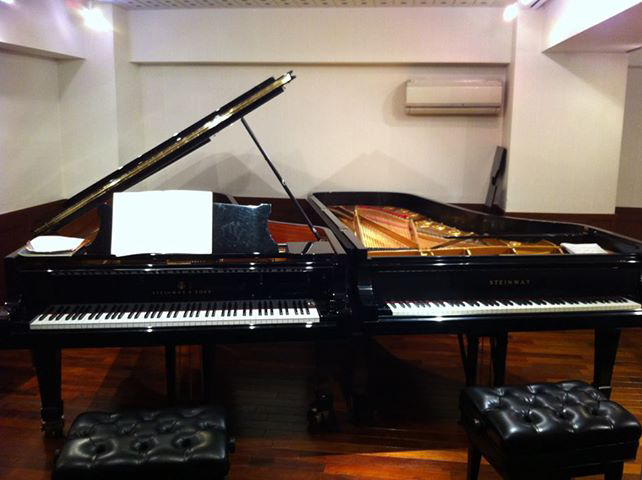 この夜はピアノが2台。通常の配置とは異なり、スタインウェイが横に2台並ぶ。だが、不思議なことに、客席フロアがしわ寄せを食って狭くなった感じはしない。ただ、いつもならピアノの後ろの演奏者用のスペースがこの夜は開放され、20脚ほどのシートが用意されていた。ちょうど2台並んだスタインウェイの真後ろで、通常とは反対側とはいえピアノの音をもろに浴びることには変わりはない。奨められたこともあり、興味もあってこの席のひとつで聴くことにした。