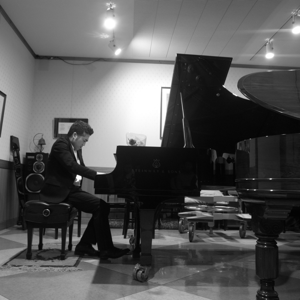 さて、左側のピアノはニューヨーク・スタインウェイで、野瀬栄進によれば他方はハンブルグ・スタインウェイ。この名器の調律では第一人者とうたわれる高木裕が運営する高木クラヴィア「松涛サロン」ならではの贅沢なセッティングだ。ここは野瀬のホームグラウンドともいうべき場所。