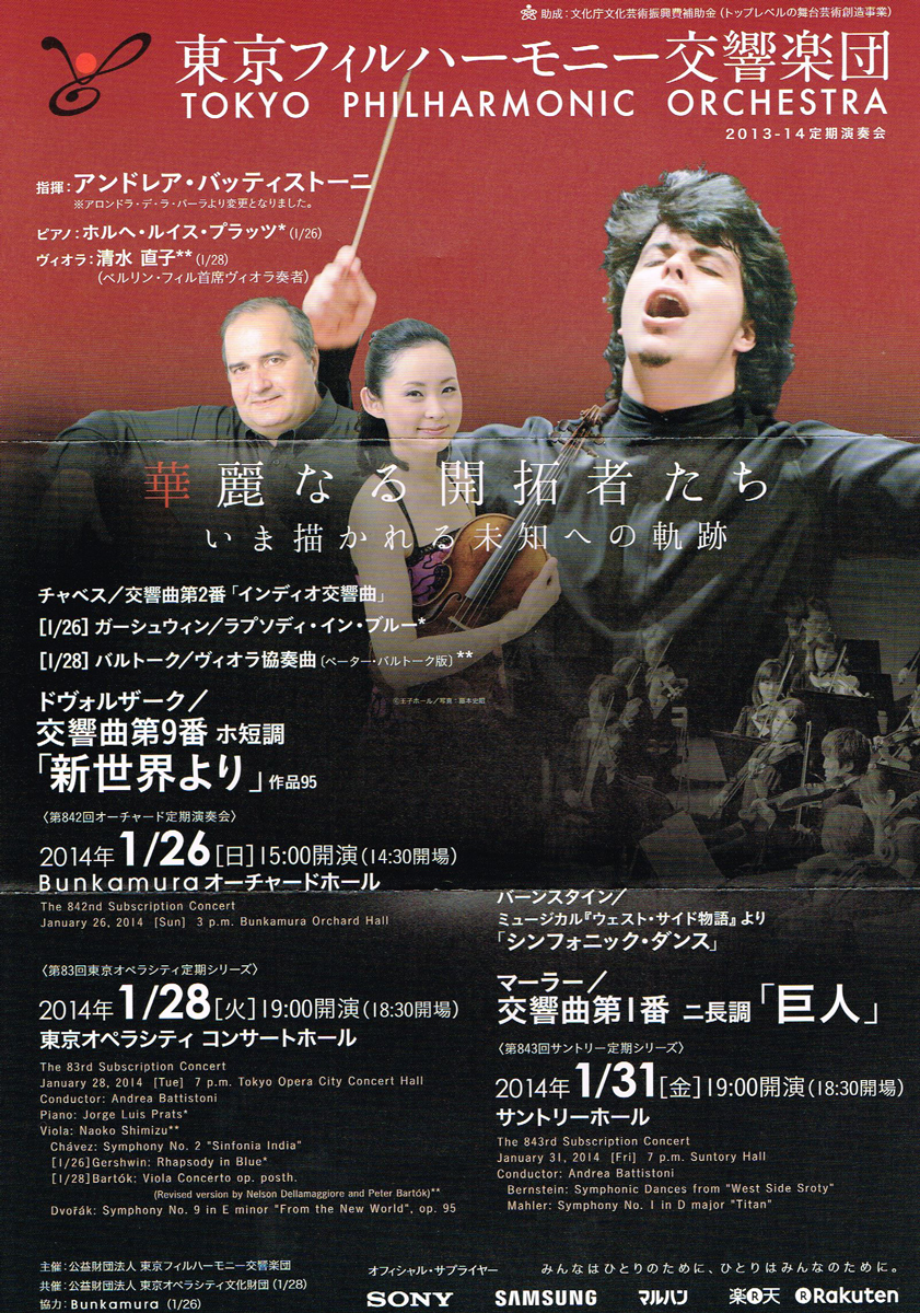 でも何故メキシコの作品をイタリア人の若手指揮者が振ることになったのかと思われるだろう。実はこの演奏会、もともとはメキシコの若手指揮者アロンドラ・デ・ラ・パーラが出演予定であった。しかし彼女はこの3月に出産予定ということでドクターストップがかかり、代わりにバッティストーニが指揮することになった。