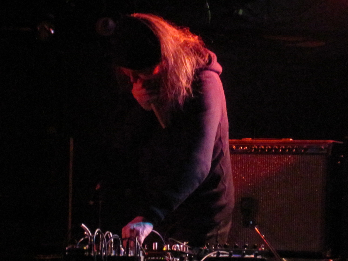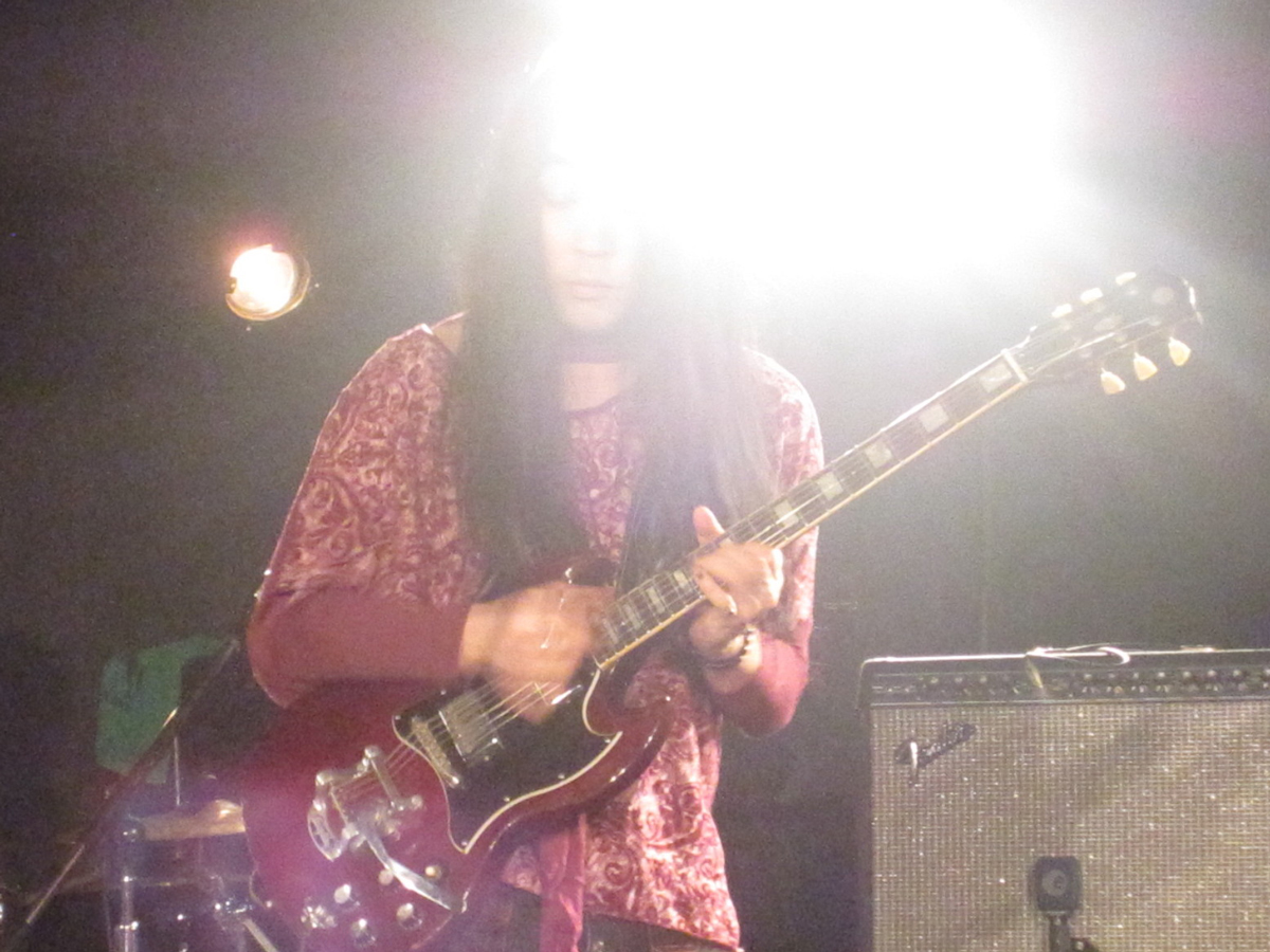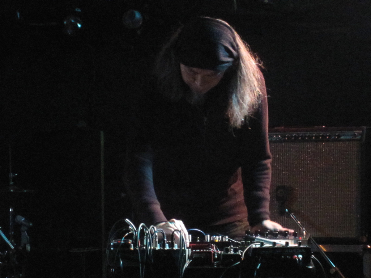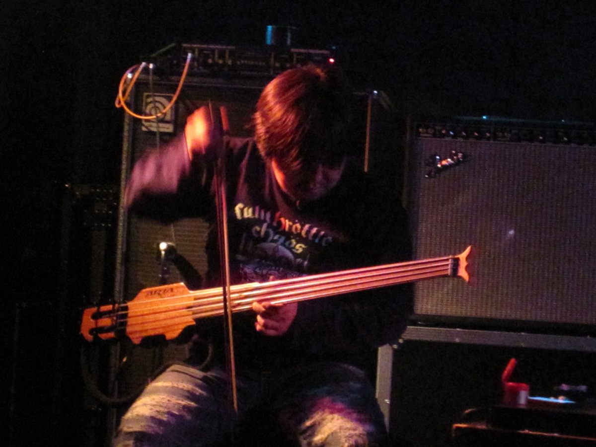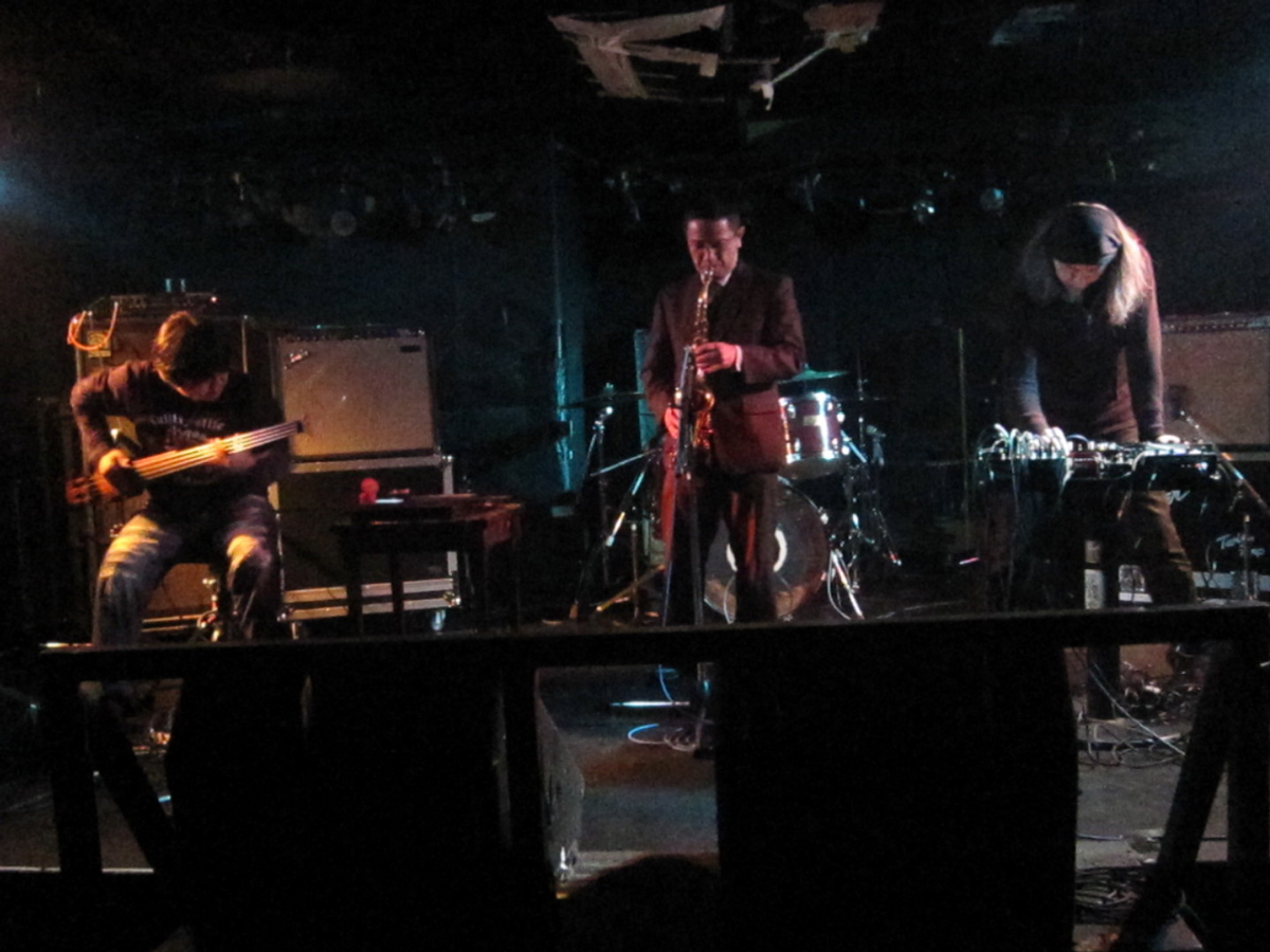 轟音サイケデリック・ロックの権化「魔術の庭」は、この日から「鳥を見た」、灰野敬二率いる「Hardy Soul」、ソロ等で活動する若手ギタリスト山崎怠雅が参加しトリプルギター編成になった。ロングヘアーがズラッと並んだ構図だけで迫力十分。福岡林嗣と山崎が弾きまくるファズギターはこれまでの数倍の大音量。ギターアンプから放射される音の壁の真ん中を割るように迫るドラムが爽快。10分以上爆音ノイズが続いた終盤のインプロヴィゼーションが終わったとき、残されたのは鈍痛に似た耳鳴りだけだった。