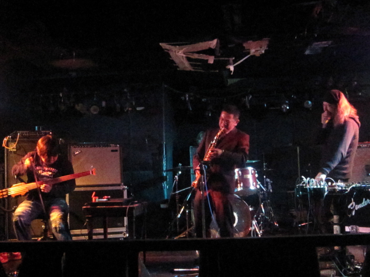 90年代ジャパノイズの中心的バンド「C.C.C.C.」を率いたノイジシャン長谷川洋(別名ASTRO)が80年代にサックス奏者の佐々木悟と組んでいたプロジェクト「解体飼育団」は、昨年秋にユニット「長谷川静男」の内田静男を加えて27年ぶりに復活した。長谷川が放射するスペーシーなハーシュノイズ、佐々木のクールなサックス、内田静男のエフェクトをかけたベースが三つ巴となり、ノイズでもフリージャズでもドローンでもない芳醇な世界が広がる。展開らしい展開のない40分の轟音に、全てを忘れてただひたすら身を任せるという甘美な歓びに浸った。