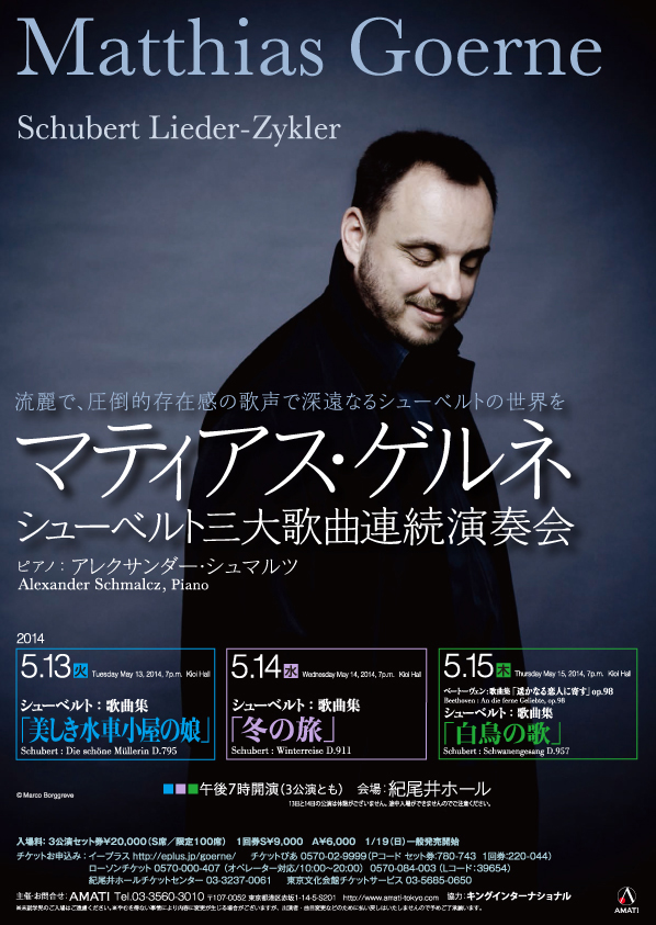 1967年生まれのゲルネ、体が楽器である歌手にとって、音楽面での経験の積み重ねと声楽的な技術が良い調和をうむ時期にきていると言えよう。彼の声は会場全体をその響きで埋めるような印象で、顔の向きや体の向きをどんなに変えようが、その響きは聴き手を包み込んでくれる。そういったある意味全方位的な厚い響きにもかかわらず、歌詞は明瞭に聞きとることができる。
