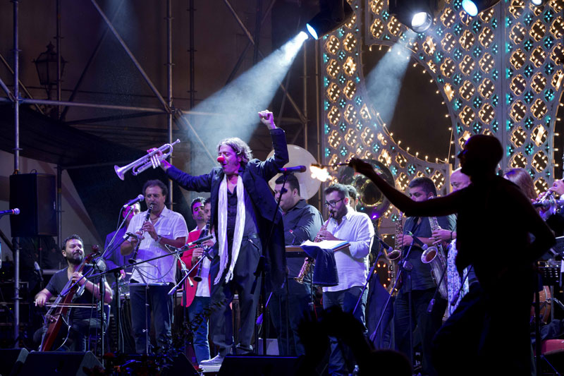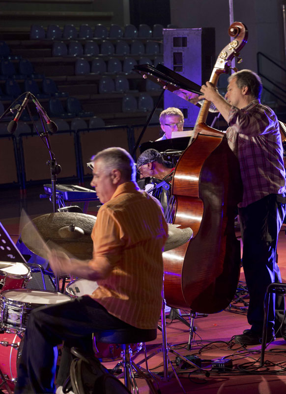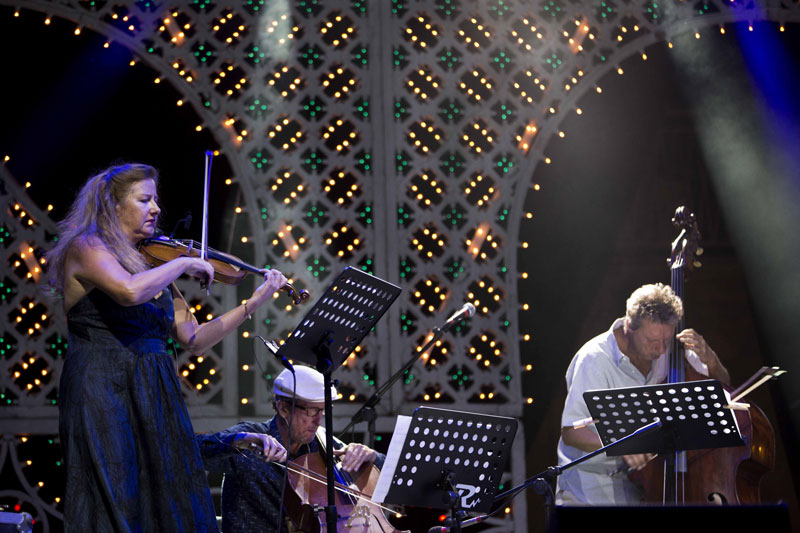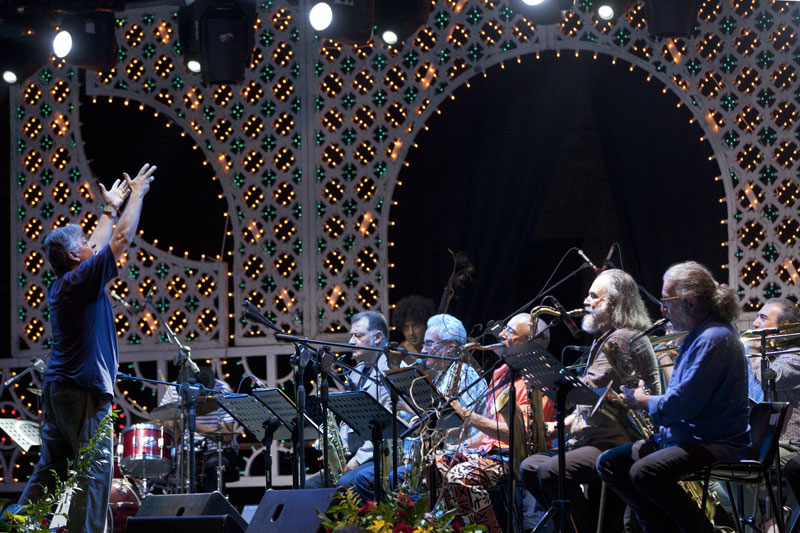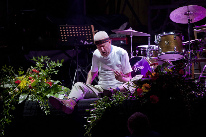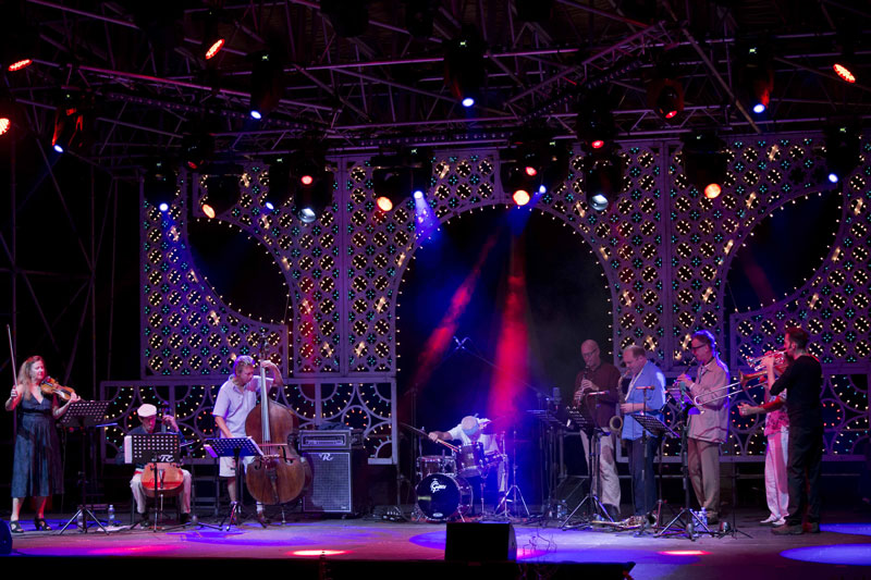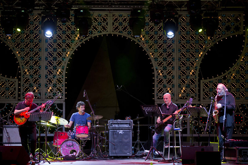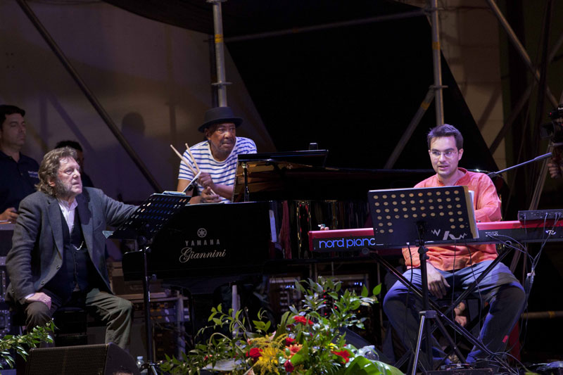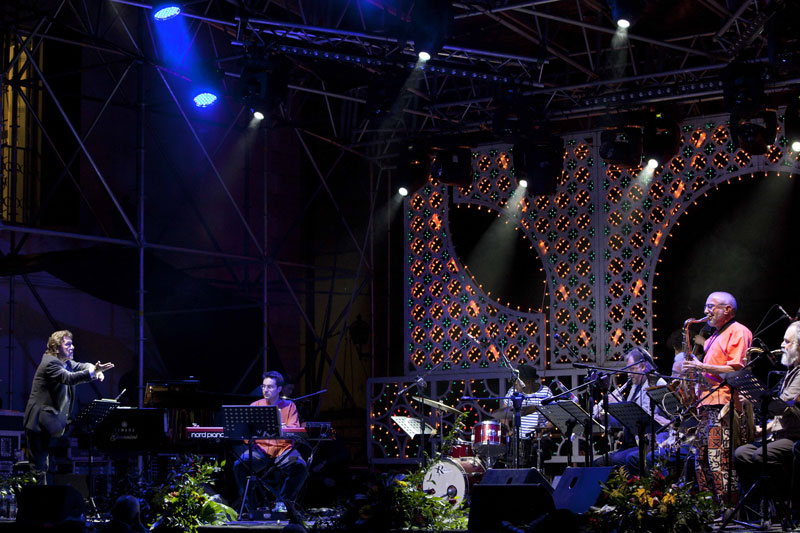 イヴニング・コンサートの幕開けはピアツェッタでのハン・ベニンクによる素晴らしいアコースティック・ソロ。続いて、ルイ・モホロ、キースとジュリーのティペッツ夫妻らが参加した「ミン=アフリック・オーケストラ」による『マンデーラのために』。モホロとティペッツの存在感、ジュリー・ティペッツの美しい声、オッタヴィアーノ、トラモンターナ、サンナらの素晴らしいソロイストたち…彼らがひとつになった一体感、この演目はフェスティヴァル全体を通じたハイライトのひとつだった。ヴィヴァ、マンデーラ!