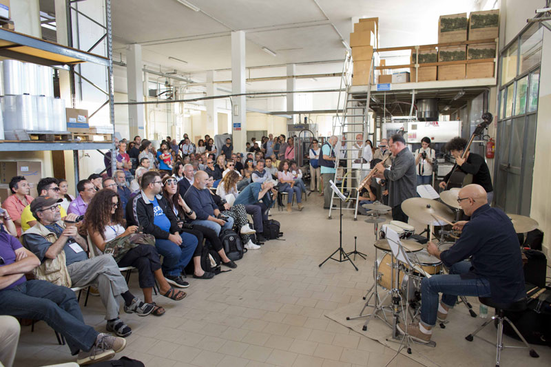 次いで、素晴らしいピアツェッタで(ジャンルイージ)トロヴェージの「オロビコ・クァルテット」と日本ツアーを打ち上げたばかりの「インスタント・コンポーザズ・プール・オーケストラ」(ICPO) を聴いた。「オロビコ」は<ル・ミルフィーユ・ボッレ・ブルー>などのポピュラー・ソングを素晴らしいアレンジで聴かせ、ICPOはいわば室内楽的ジャズとインプロ・コンテンポラリー・ミュージックをミックスした内容といえば良いか。長い道程を共に歩んできたハン・ベニンクと仲間たち。ミーシャ・メンゲルベルクの椅子は空席のままだが、今さら説明の必要はないだろう。彼は仲間たちと共にそこに存在し続けているのである。素晴らしい新作も出た。ICPはエックス・コンヴェーント・ディ・ドメニカーニで大勢の参加者と共にワークショップを主宰し、広い中庭でのコンサートで締めた。
