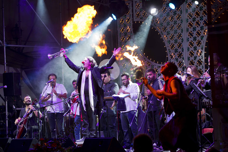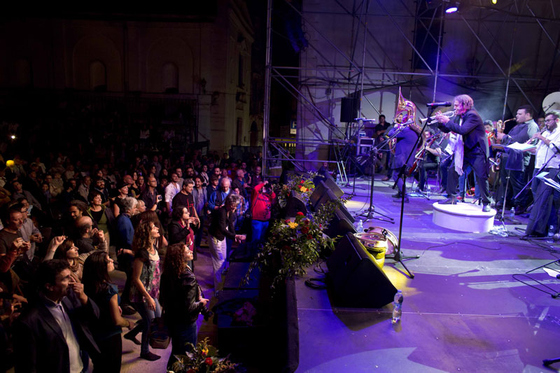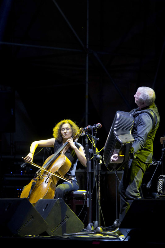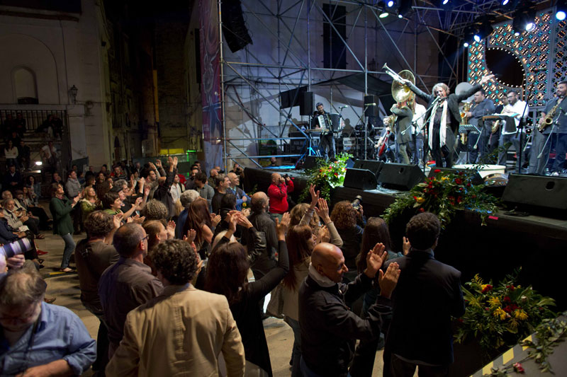 続いて登場したのは、アコーディオンとチェロのデュオ(パイエール、ヴァルチック)だったが、タンゴのクリシェに満ちたイージー・リスニング調の演奏で私の趣味ではなかった。幸いなことに、彼らはつなぎで、その後に登場した大規模なバンドのパフォーマンスに救われた。彼らは、ブラス、シンガー、アクロバット、火食い術師、ミュージシャン、リズム・セクションから成る大混成部隊で、ニーノ・ロータからサン・ラまで自由に往き来、はたまたナポリ民謡まで登場する賑やかさはまるで獰猛なタランチュラの上に乗っているような感覚を覚えたものだ。そうだ、忘れないうちにひと言、現地で楽しみたかったらアトラクション;Cesare Dell’Anna & Girodibandaを雇うことを忘れずにね!(PRをやっちまったね!)
