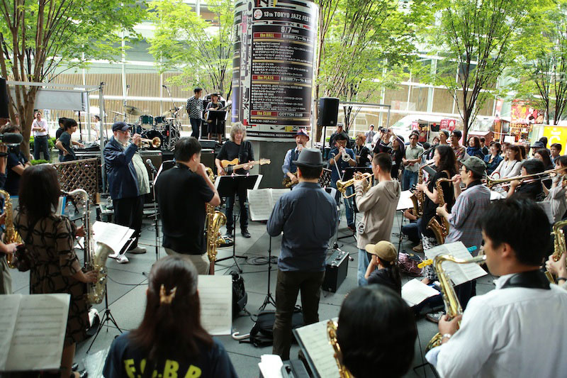 東京JAZZは2002年に始まり今年で第13回を迎えた。2006年に東京国際フォーラムで開催となり、丸の内の夏から秋に向かう風物詩に。10周年を迎えたラ・フォル・ジュルネ・オ・ジャポン(LFJ)と並んで、東京・丸の内、そして日本を代表する音楽フェスティバルとして定着している。いずれも通りがかりでも友人と家族と気軽に音楽に接することができる点でも貴重なイベントだ。地上広場「東京JAZZ LABO」では、10:30「朝ジャズワークショップ」から静かにフェスティバルが始まり、次第に人が集まってきた。ホールAがメイン会場ではあるものの夏の陽射しを受けながら始まるフェスティバルは気持ちが上がる。