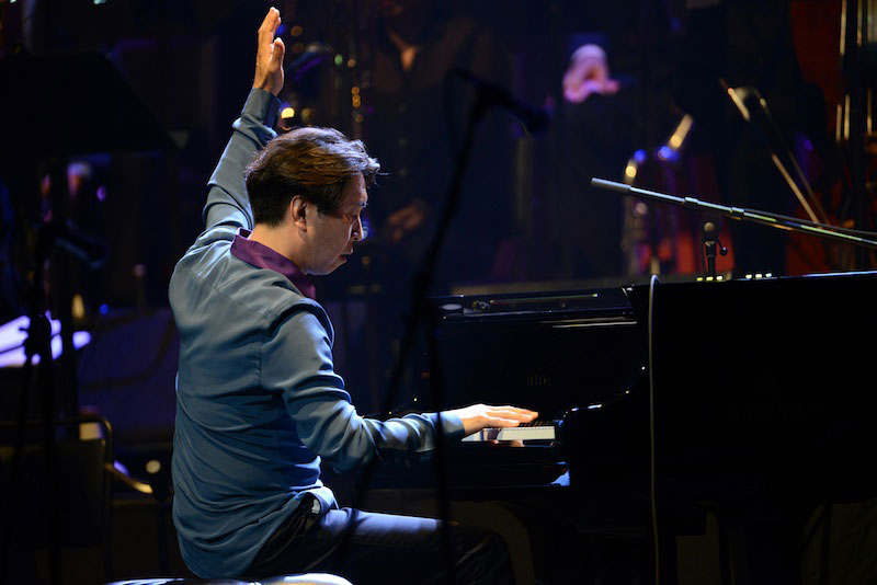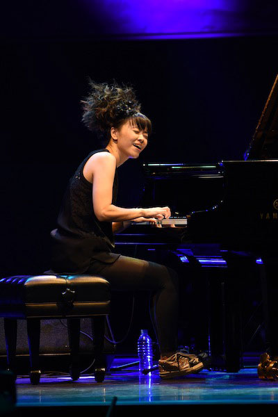 ミシェル・カミロと上原ひろみのデュオ、2台のピアノが会話を交わすよう楽しくやりとりし、超絶のテクニックで鍵盤上を駆け巡る。ラテン的なグルーヴを中心にとても良い相性をみせる。途中<月の沙漠>も取り上げる。対等に絡み合う演奏に場内は興奮に包まれる。強いて言えば、曲のフォーマットを大きくは崩さない中、同じ土俵の上で対等に闘っていたが、もっとどこに行ってしまうかわからないような枠を取り外したかけひき、場外乱闘も聴いてみたいと思った。