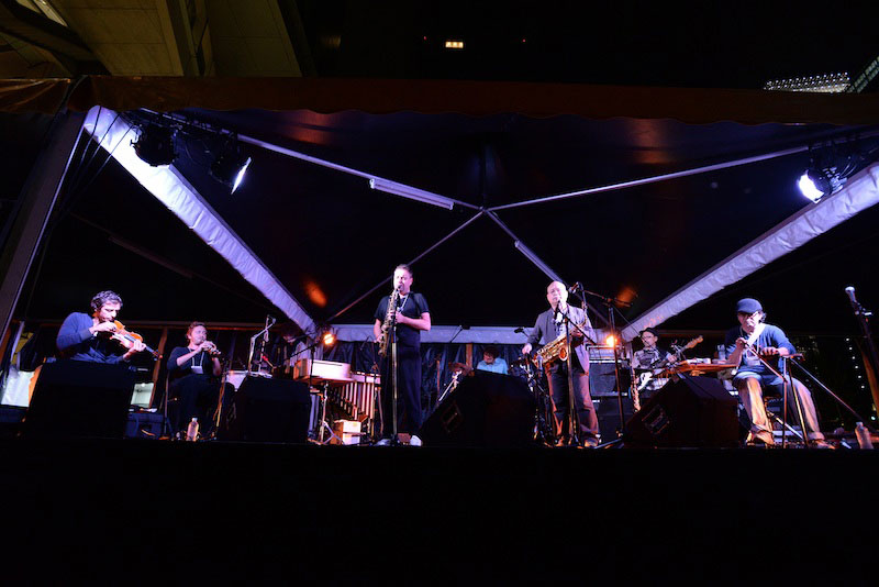ホールAから有楽町駅、東京駅に向かう帰り道にあたる地上広場。the PLAZA Main Stageでの最後の公演が続いていた。ポーランドと日本のアーチストを結んできた内橋和久が構成したスペシャルユニットの演奏。坂田明も参加している。私はBGM的に聴いていた感じだったが、もうひとつのトリにふさわしい演奏だった。