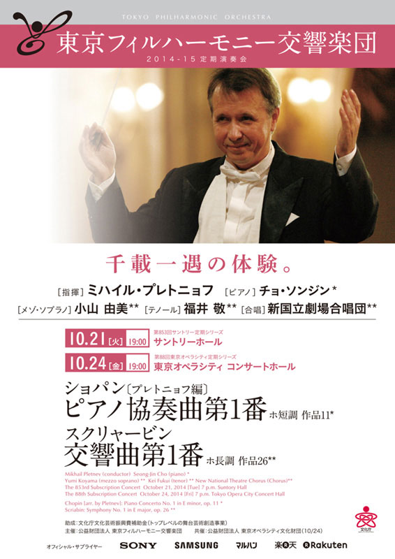 プレトニョフが東京フィルを振ったのは2003年が最初だというが、最近ではピアニストという以上に指揮者としての優れた業績ぶりが、ほぼ10年に及ぶ共演で高い評価を得ていることは周知のことと思う。これまで数回彼のタクトを経験しているが、今回は圧倒的名演といってもおかしくないほどの緻密な解釈とスクリャービンへの深い愛情に裏打ちされたタクトぶりだった。