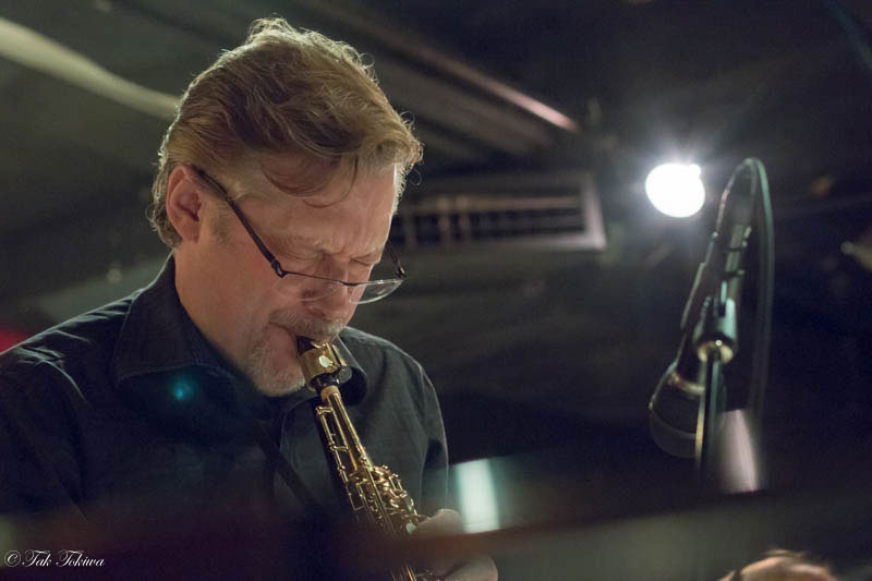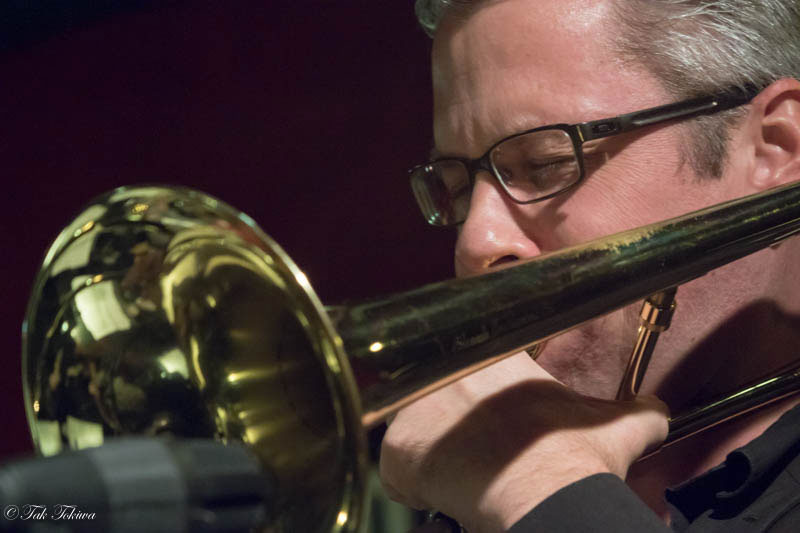 2日目のこの日も、新旧作品がミックスされた構成だった。1994年のデビュー・アルバム、2000年の”ジャズ・スタンダード”でのライヴ・アルバムに収録されている<Last Season>で幕を開ける。イントロを飾るフランク・キンボロウ(p)は、オリジナルと同様だが、当時はグループに参加してなかったアコーディオンのゲイリー・ヴァサースと、デイヴ・ピエトロ(as,ss,fl)がメロウなソロを紡ぐ。ステージにロジェリオ・ボカット(per)が加わり、シュナイダーが90年代終わりに訪れて以来、愛してやまないブラジルの音楽をモチーフとしたニュー・アルバム収録曲<Lembrança>は、クラレンス・ペン(ds)と、ボカットの激しいリズムの応酬の上で、ライアン・ケバリー(tb) がエッジの効いたソロを執った。2012年の初演から、時間をかけて構成が完成されている。 デビュー作の『Evanescence』から、<Gumba Blue>がセレクトされる。20年に亘って演奏されているレパートリーだが、優れたメンバーによって、毎回新たな命が吹き込まれ、成長を続けているとシュナイダーは語った。旧作は、日によってソロ・オーダーが異なり、違った側面を聴かせる。そしてニュー・アルバムのタイトル曲<The Thompson Fields>が、満を持して演奏された。シュナイダーの故郷ミネソタ州ウィンダムの幼なじみ、農場主のトニー・トンプソンに捧げられた曲で、サイロの上から見渡せる広大な農地の風景を、幼い日々の思い出に重ねて描いた大作だ。2009年にアーティストシェアで資金を募って制作され、毎年演奏されて好評を博してきた。オーケストラ結成時からの古参メンバーのキンボロウと、2012年から本格的に加入したラージュ・ルンド(g)が、幻想的なアンサンブルの上で、美しいトーンで歌い上げる。続く<Home>は、2012年のニューポート・ジャズ・フェスティヴァルで初演された。同フェスティヴァルのプロデューサーの、ジョージ・ウェイン(p)に捧げられた曲である。この曲も、ニュー・アルバムに収録される予定である。99年の初めてのブラジル訪問は、振り返ってみると自らの音楽にとって大きなターニング・ポイントであったと、シュナイダーは語っている。深い陰影を帯びていた彼女の音楽は、明るく歓喜に満ちたサウンドへと変貌を遂げたという。<Hang Gliding>は、当時の体験をモチーフに描かれた曲だ。飛び立つ前の、高揚感とためらいをグレッグ・ギスバートがフリューゲルホーンで描き、飛び立った昂奮と滑走感を、ダニー・マッキャスリン(ts)が激しいプレイで表現する。エンディングは、前作『The Winter Morning Walk』から<Walking by Flashlight>のビッグバンド・アレンジ・ヴァージョンで、オリジナルと同じくスコット・ロビンソンのアルト・クラリネットが、フィーチャーされる。テッド・クーザーが、癌との闘病生活のリハビリテーションで、強い日光を避けて早朝に散歩をしてアメリカ中西部の自然とふれあい生きる歓びを描いた詩に、シュナイダーが音楽でさらなるストーリーを奏でる。シュナイダー自身も2003年に乳癌を患い、作曲と闘病、死への恐怖の狭間で、自らの内面と対峙し、音楽の本当の意味を探求した経験を持つ。人生の転換点となり、シュナイダーの音楽にも、大きな影響を及ぼした。すべてを克服して完成したのが、自ら現時点の最高傑作と誇る2004年度のグラミー賞ラージ・ジャズ・アンサンブル部門を受賞した、『Concert in the Garden』である。10年の時を経て、いよいよ次なる高い到達点を望むニュー・アルバムが、リリースされる。この日のセットでは、その50%ほどが明らかになった。ニュー・アルバムと来年のリリース・ツアーへの期待が、大いに高まる。