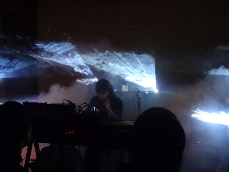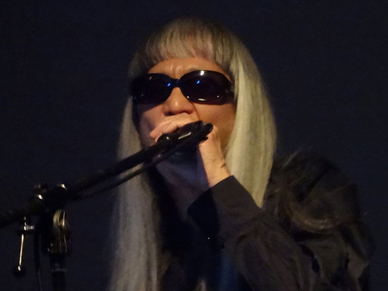 70年代末にパンク・バンド、アーント・サリーのヴォーカリストとしてデビューし、80年代からソロで独自の歌世界を追及するPHEW(フュー)は、2013年にエレクトロニクスと映像によるソロ・プロジェクトをスタートした。一人で数多くの電子楽器を操るエレクトロニカ・モードの演奏は、アーント・サリー時代に在籍していたインディ・レーベル、ヴァニティ・レコードのニューウェイヴ・テクノ路線と、80年代に共演したコニー・プランクやCANなどのジャーマン・ロックを融合したトランス電子音響。個性派映像アーティスト、ロカペニスのレーザー放射が、音の波長と同期し周波数強調するマジックを生み出し、狭いライヴハウスを電子砂嵐吹き荒れる大砂漠にワープさせた。