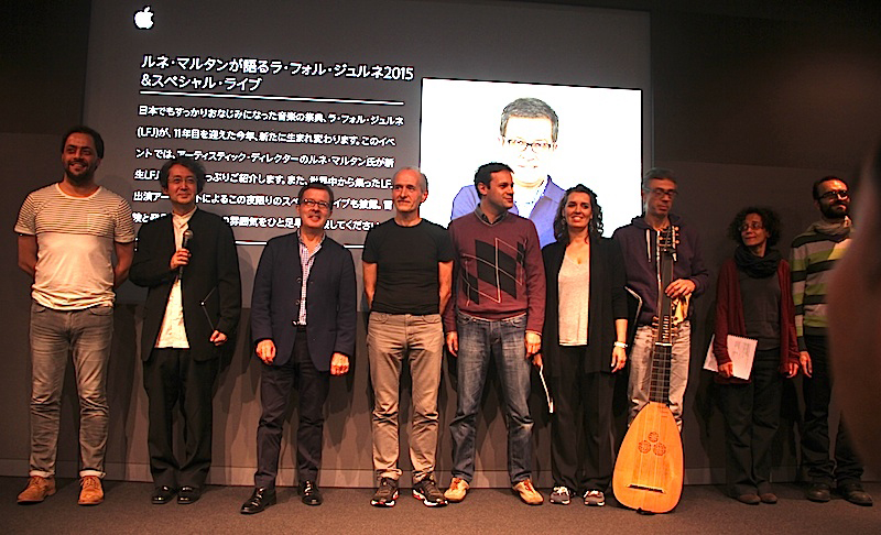 ルネ・マルタンが今回のテーマと見どころを語る。次いで声楽アンサンブルのラ・ヴェネクシアーナ、ポルトガル・ファドのアントニオ・ザンブージョ(g)のミニライブを行い撮影自由、TwitterやFacebookでの拡散を推奨する。2014年に比べルネのトークも短く、パシオンの総説としてはよいものの、意外な話、とっておきの話までは掘り下げきれなかった。ライブもよかったが、SNS拡散ならもっと早い時期がよく中途半端感は否めない。これなら地上広場のプレナイトイベントにルネが出演して、SNS推奨で盛り上げた方がよかったかも知れず、こういったプロモーションの最適化は今後の課題だろう。なお、一般にApple Storeトークイベントの多くは録画されポッドキャストで公開されるが、ルネは2014年も2015年も録画公開されていないので、次回以降に期待したい。