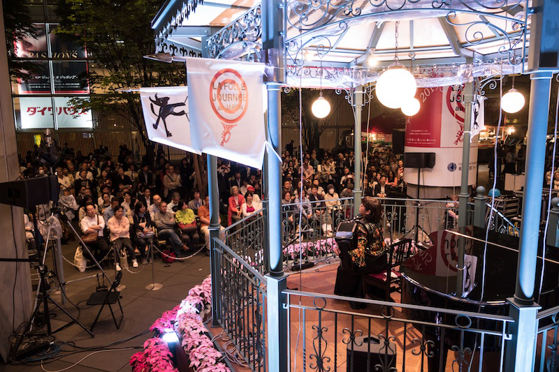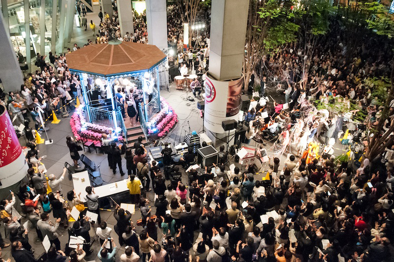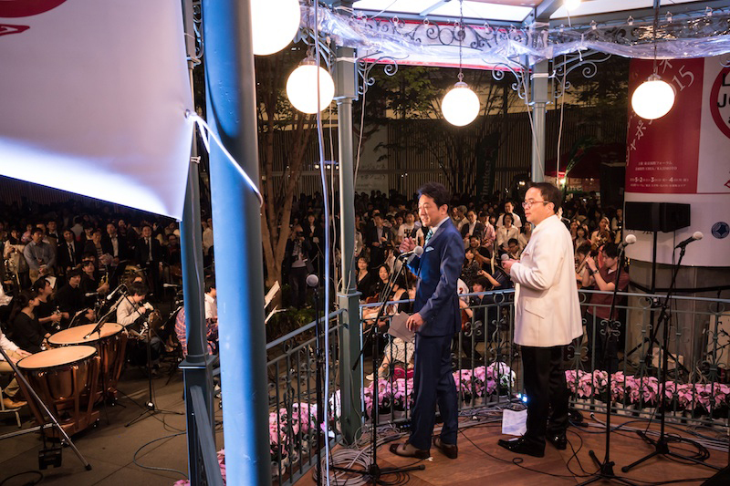 2013年「みんなでボレロ」から始まった参加型イベント。今年はヘンデルの「メサイア」より「ハレルヤ・コーラス」。指揮は曽我大介とアンバサダー辰巳琢郎が盛り上げた。次いで、「熱狂のプレナイト」として、御喜美江(アコーディオン)、ポルトガル・ファドにルーツを持つアントニオ・ザンブージョ・クインテットによる無料公演。金曜夜、仕事帰りに仲間と飲みながら思い思いに楽しむ姿はLFJの大切な一面だ。