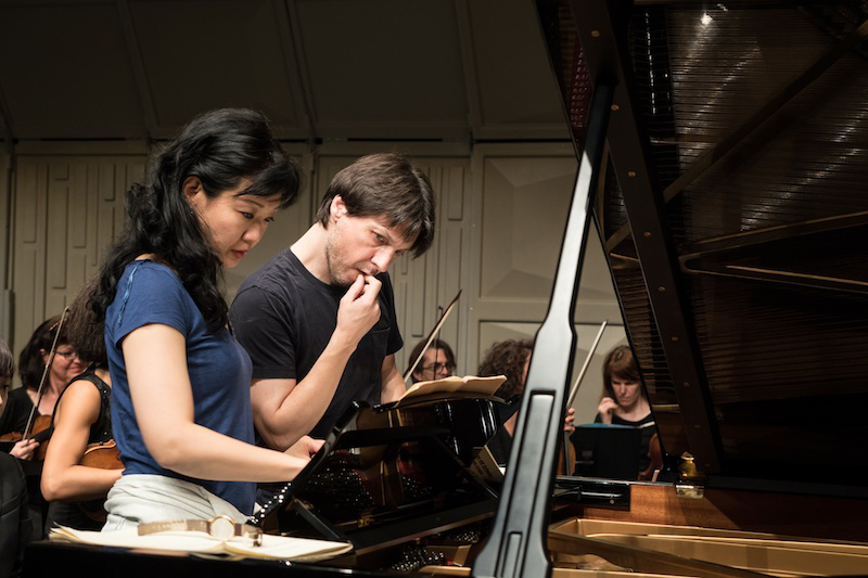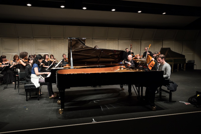 晩年のバッハがライプツィヒで多忙を極めながらも情熱を注いだ2台のチェンバロのため協奏曲。それぞれ原曲があり、ライプツィヒの街中のカフェでのコンサートのために2台のチェンバロとオーケストラのために編曲されたと言われる。それぞれの組み合わせで2台ピアノ曲を計3曲奏でる。ヴァーチュオーゾ3人がバッハの溢れる生命の躍動と、根源的な感情を浮かび上がらせる。写真はリハーサル時のもの。