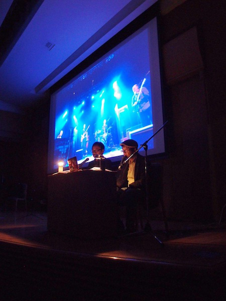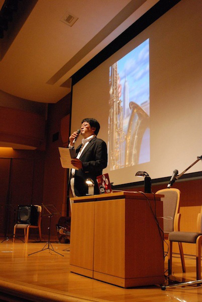 まず、慶應義塾大学文学部教授、アート・センター副所長の粂川 麻里生(くめかわまりお)から常盤が紹介される。慶應は常盤の出発点であり、その意味で慶應でのセッションの実現には大きな意味がある。常盤はここに学び、単位をほぼ取得しながら中退するが、1986 年に慶應のビッグバンド、ライトミュージックソサイエティのモントレー・ジャズ・フェスティバル遠征にカメラマンとして随行し、そのままニューヨークまで旅行したのがこの業界に入るきっかけとなったという。常盤の慶應への凱旋ともいえるこのセッションが実現した2015年に、ライトが山野ビッグバンド・コンテストで最優秀賞&最優秀ソリスト賞(片山士駿fl)のダブル受賞となり、ニューヨーク遠征を予定していることにも因縁めいたものを感じる。慶應を飛び出したことで動き出した常盤の人生が、今の学生に繋がり、何か運命の環が閉じるようでもある。
